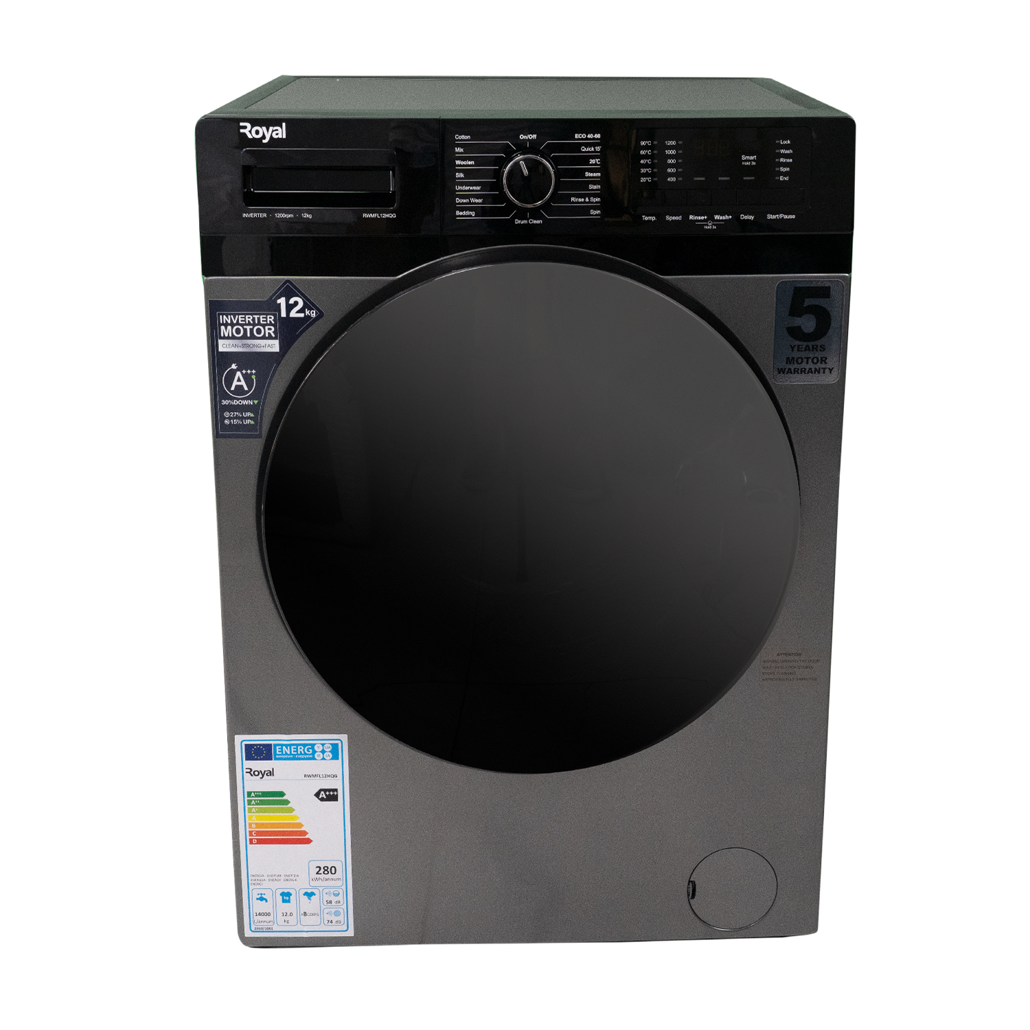 Royal 12KG Front Load Washing Machine (RWMFL12HQG) is your laundry’s new best friend! With its Anti Wrinkle feature, this washing machine takes the chore out of ironing, keeping your garments looking fresh and ready to wear straight from the drum.